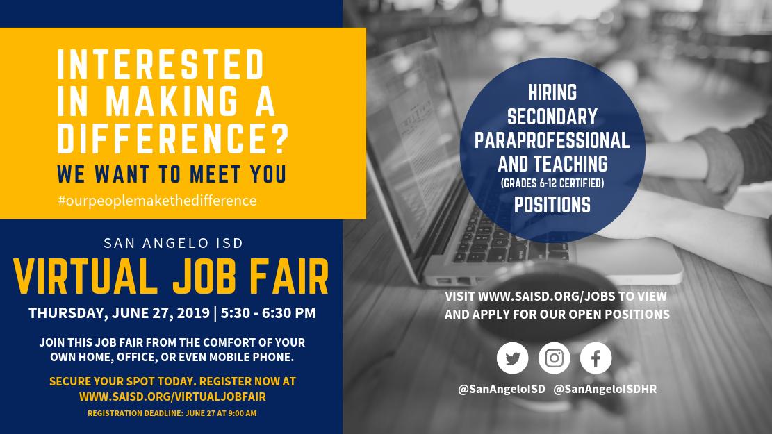 San Angelo Isd On Twitter Saisd Virtual Job Fair Thur June 27 5 30 6 30 Pm Join From The Comfort Of Your Own Home Office Or Mobile Phone We Are Hiring Secondary Teaching