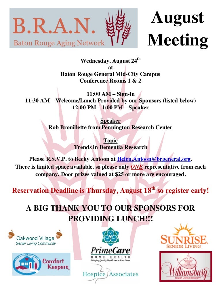 B R A N August Meeting