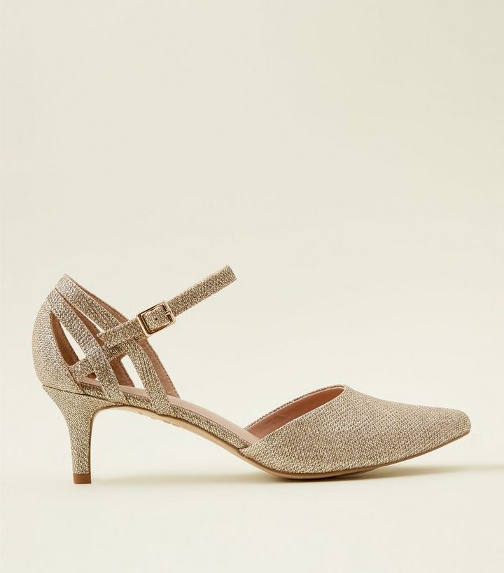 Wide Fit Gold Comfort Flex Glitter Pointed Kitten Heels New Look