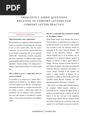 Frequently Asked Questions Relating To Comfort Letters And Comfort Letter 2017 10 02relating To Comfort