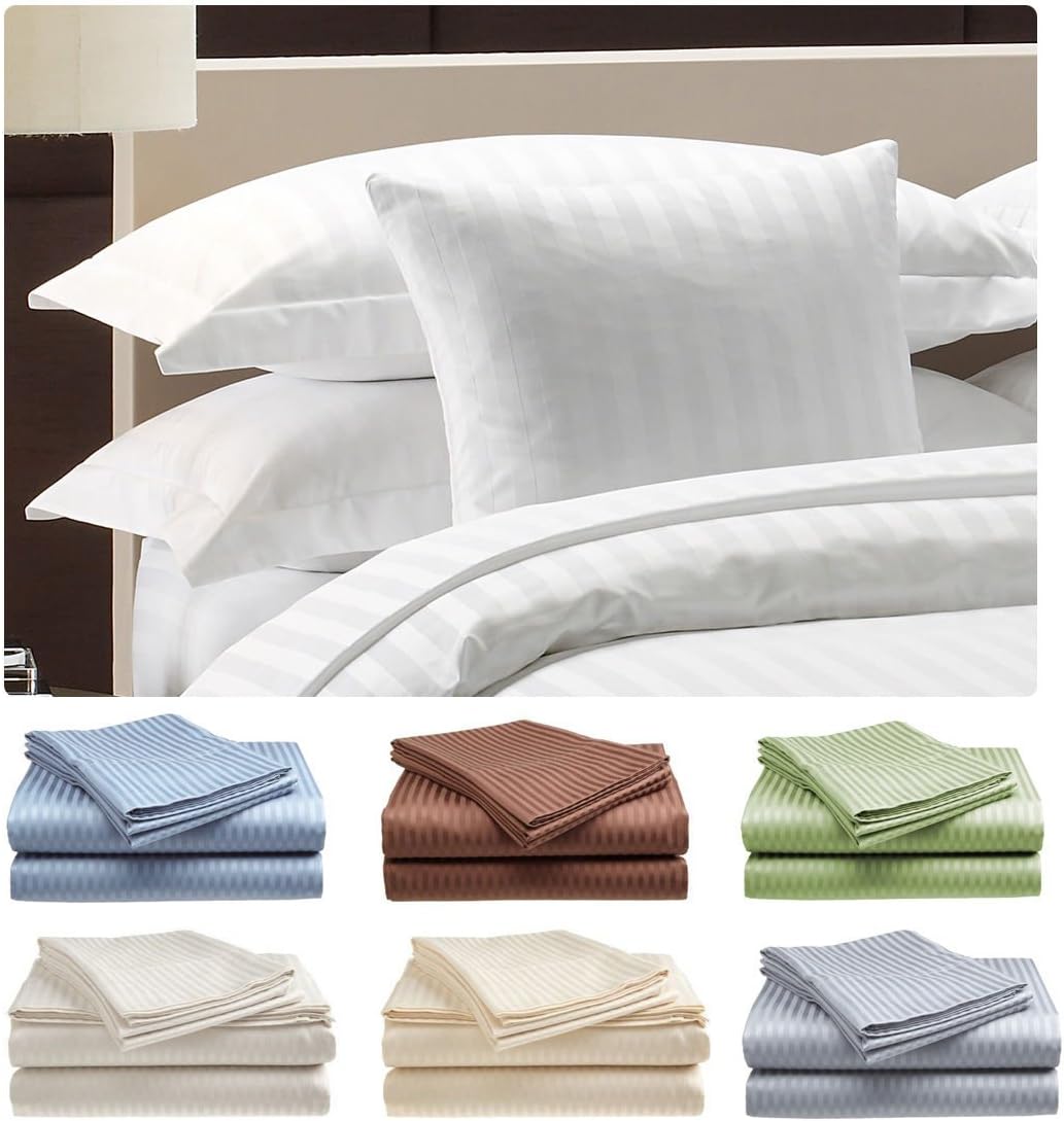 Amazon Com Comfort Linen Queen Size 400 Thread Count 100 Cotton Dobby Stripe Sheet Set White Home Kitchen