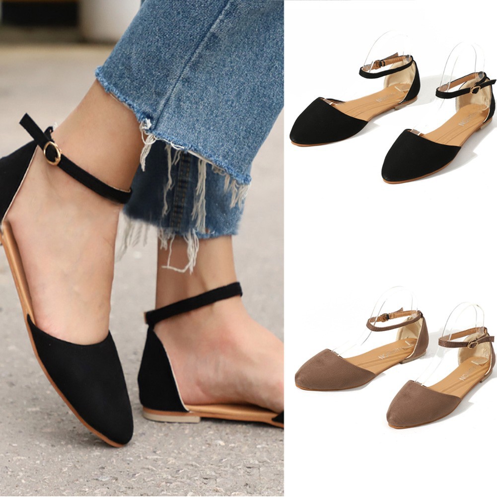 Bilibap Women Flat Shoes Ankle Strap Ballet Pointed Toe Comfort Plus Sandals Shopee Philippines