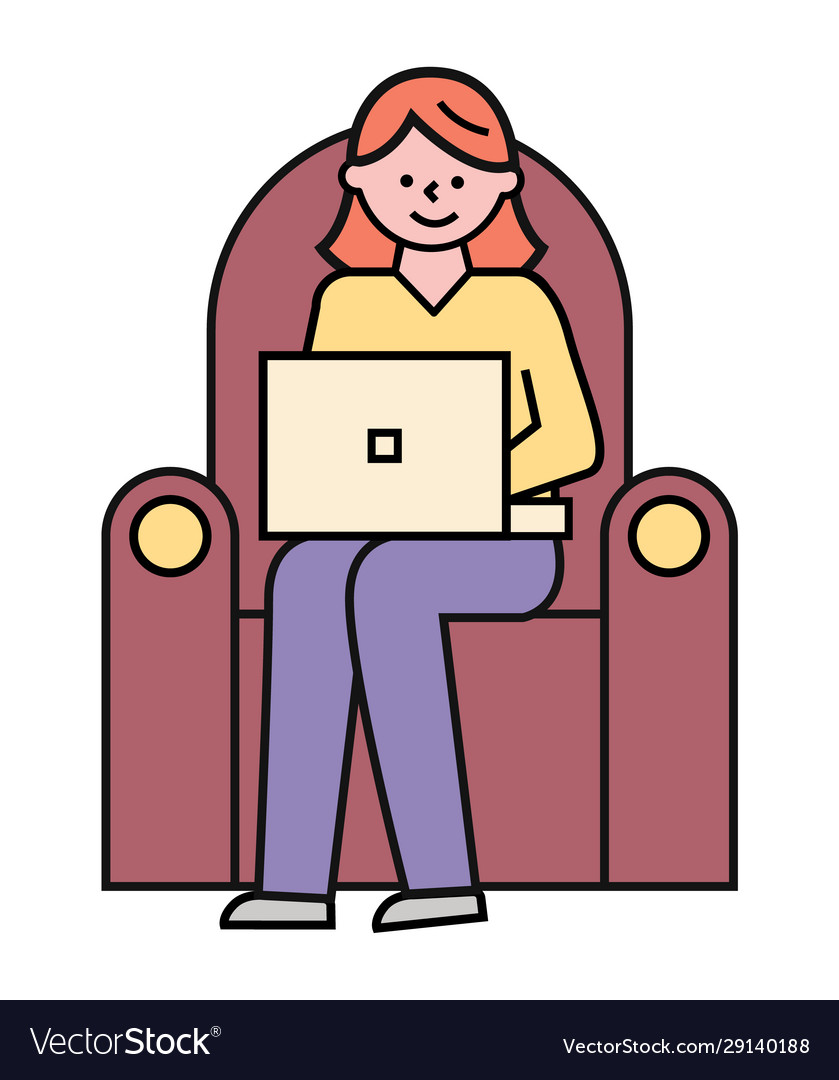Woman Work Or Study On Laptop Comfort Armchair Vector Image
