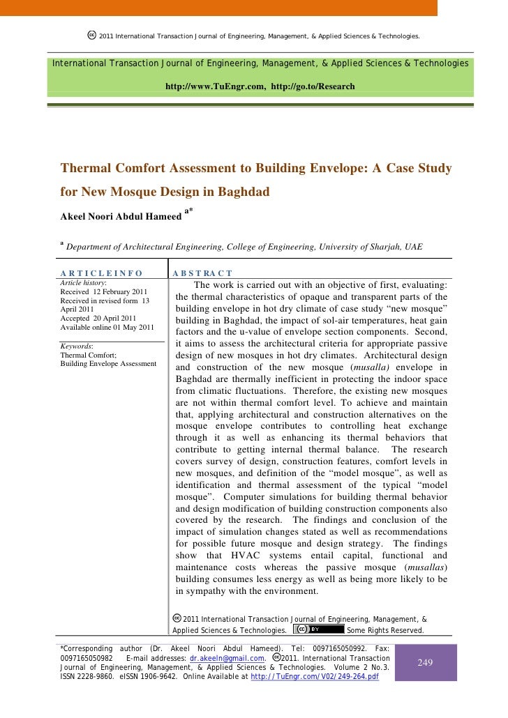 Thermal Comfort Assessment To Building Envelope A Case Study For New