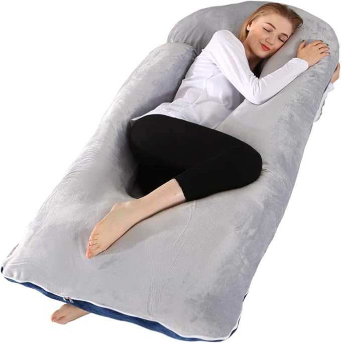 Amazon Com Pregnancy Pillow 60 Inches Full Body Pillow Maternity Pillow For Pregnant Women Comfort U Shaped Zootzi Pillow With Removable Washable Velvet Cover Grey And Navy Blue 60 X 28 Inches Full Size
