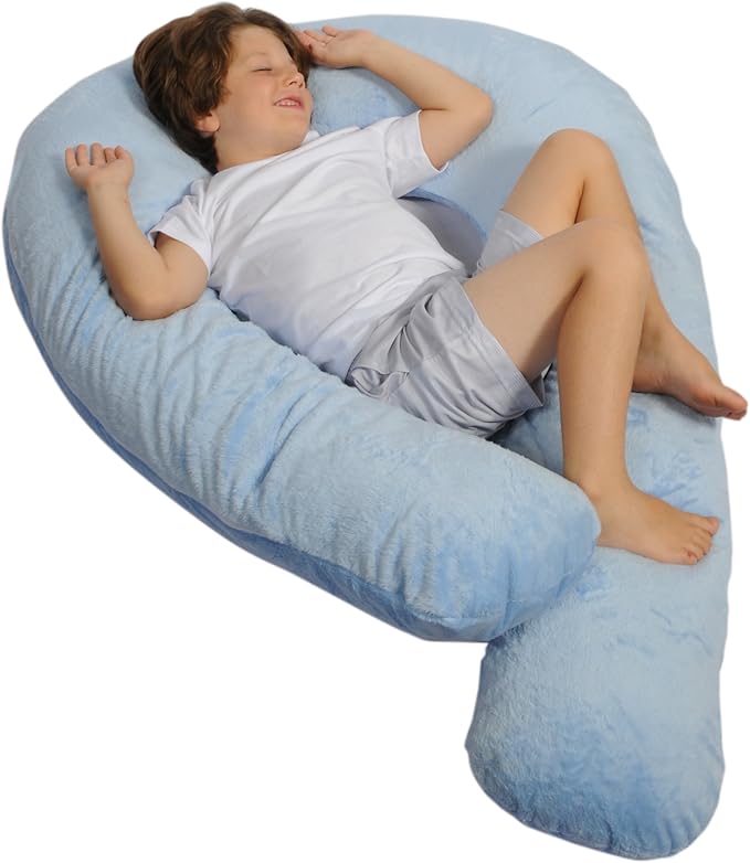 Amazon Com Moonlight Slumber Kids Comfort U Body Pillow For Kids Light Blue Plush Pillow Cover Home Kitchen