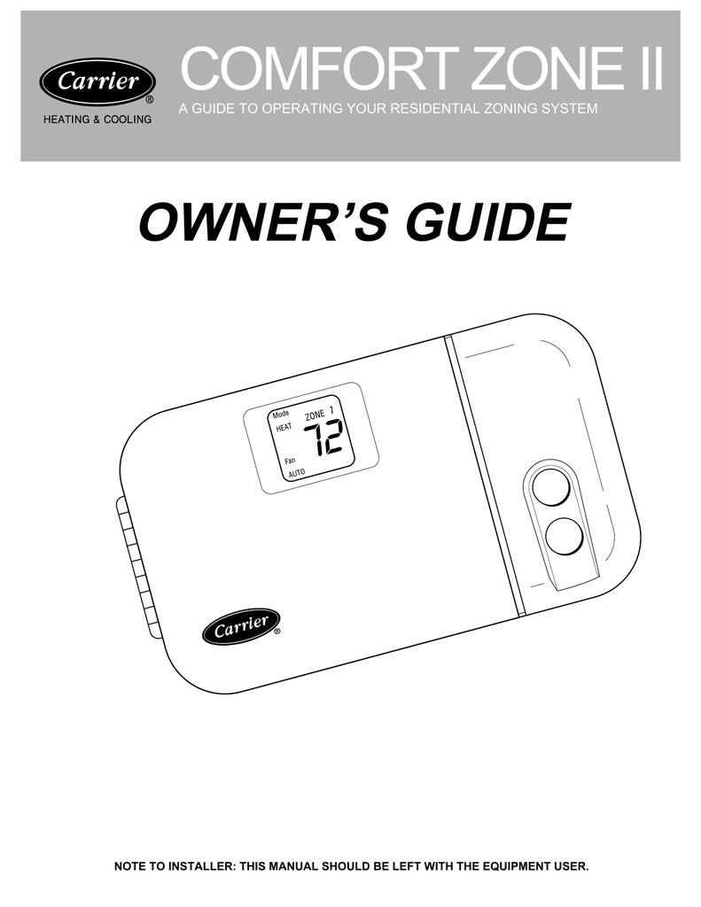 Carrier Comfort Zone 2 Thermostat Installation Manual