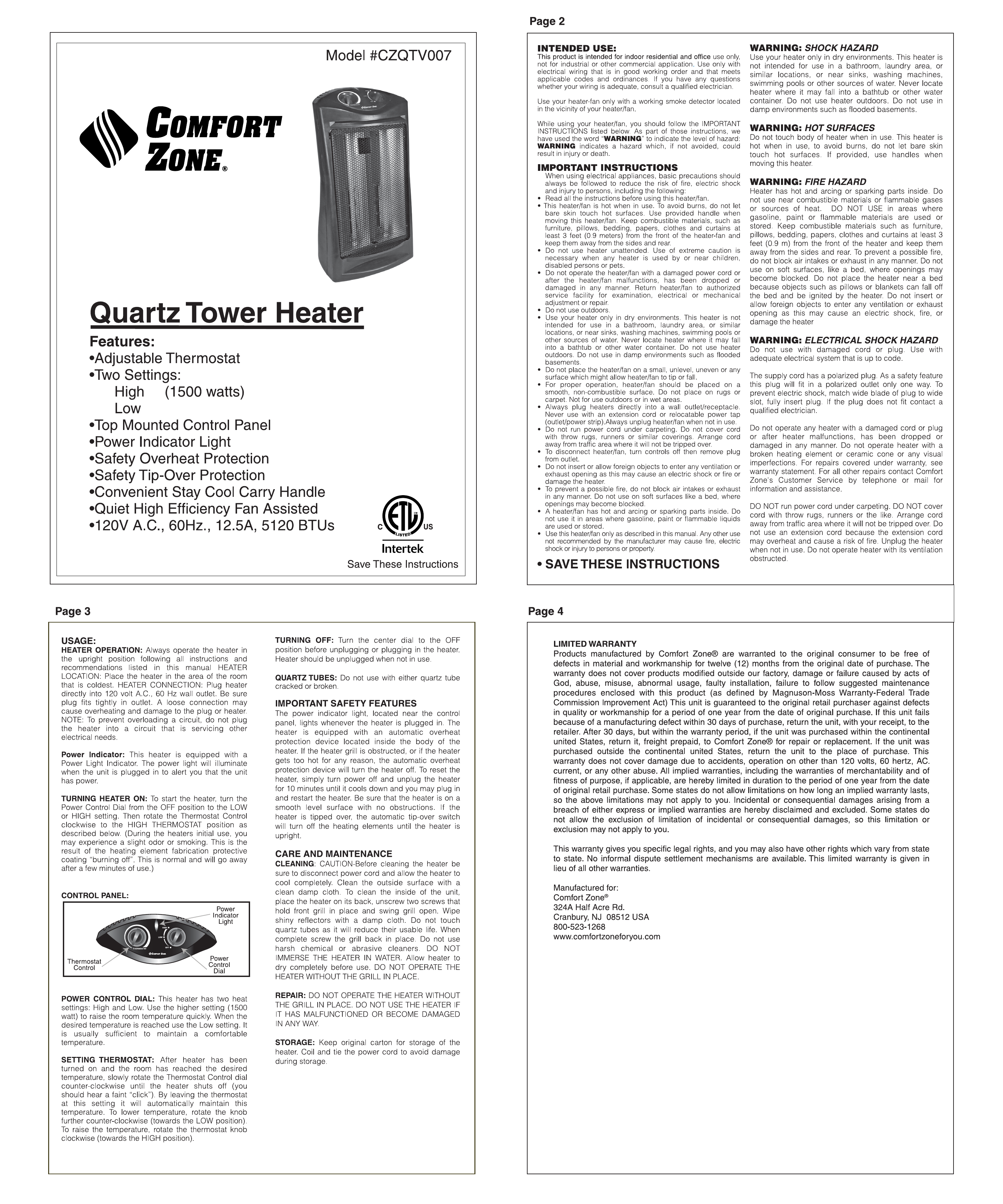 Comfort Zone Cz998 Radiant Heaters Download Instruction Manual Pdf