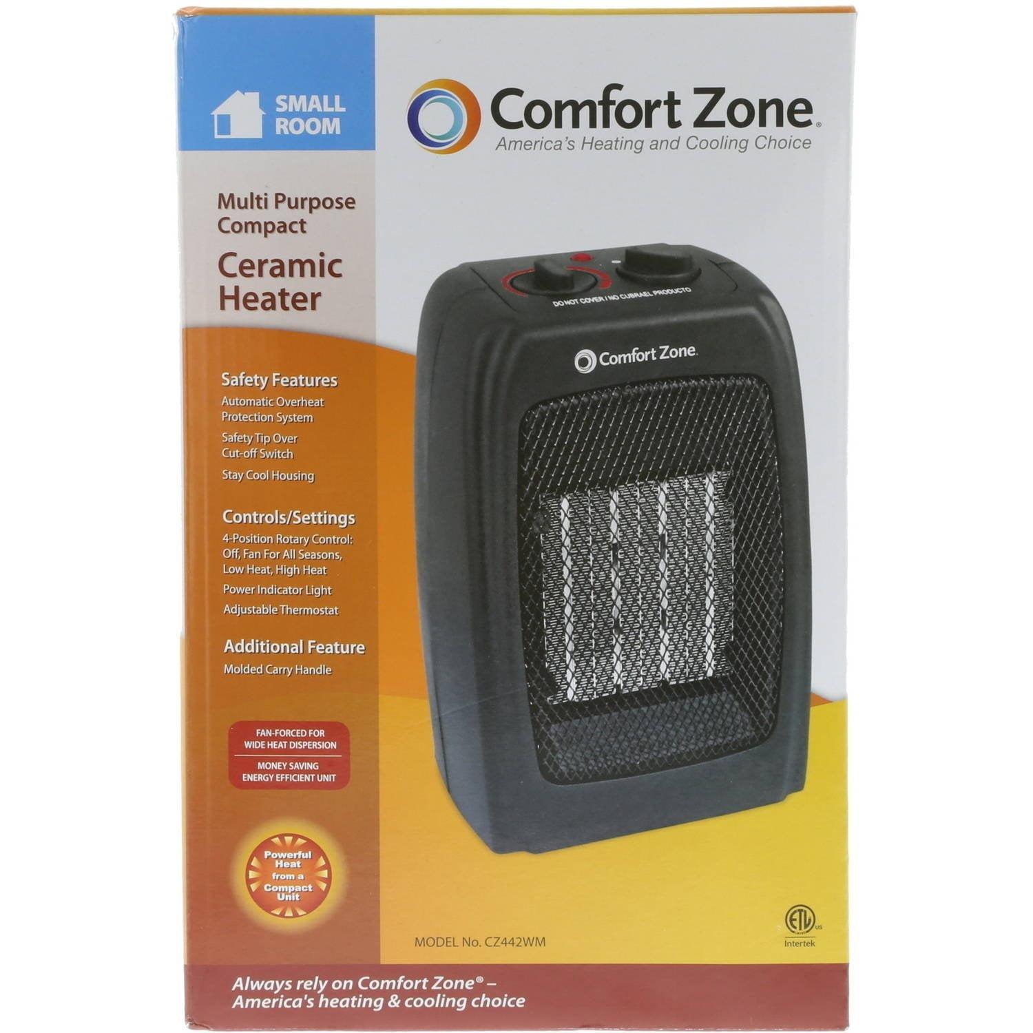 Comfort Zone Cz35 1500 Watt Portable Heater With Thermostat White Walmart Com Walmart Com
