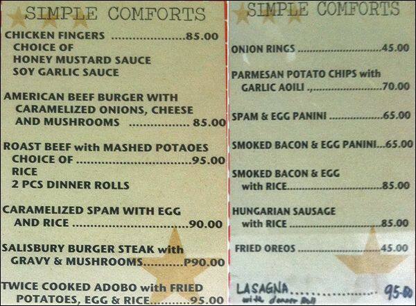 Simple Comforts Menu Menu For Simple Comforts Malate Manila