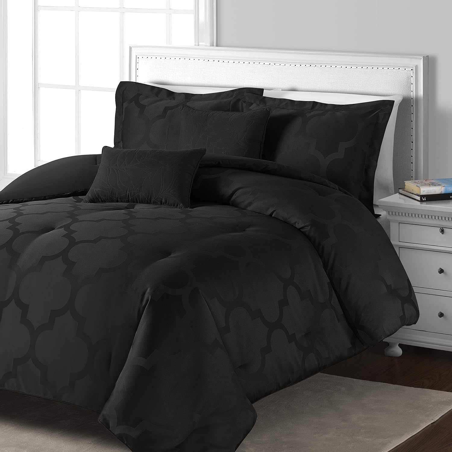 Amazon Com Comfy Bedding Lantern Jacquard Microfiber 5 Piece Comforter Set Black King 5 Piece Home Kitchen