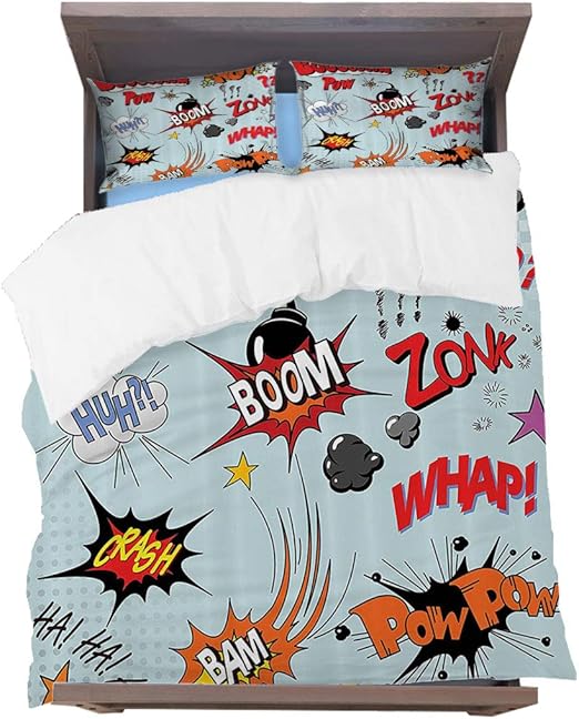 Amazon Com 1950s Decor Collection Soft Microfiber Comforter Cover Comic Book Explosion Expression Thoughts Noise In Text Dynamite Cartoon Image Comforter Cover With Zipper 69 W X 86 L Orange Blue Red Black Home