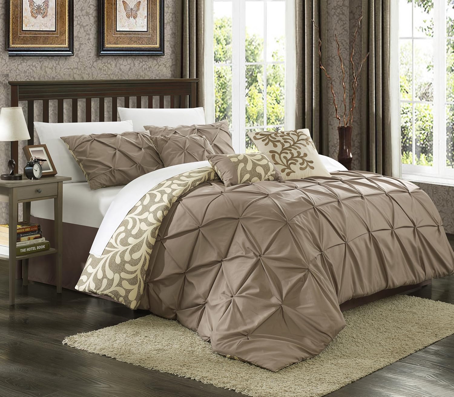 Amazon Com Chic Home 7 Piece Trenton Reversible Contemporary Comforter Set King Taupe Home Kitchen