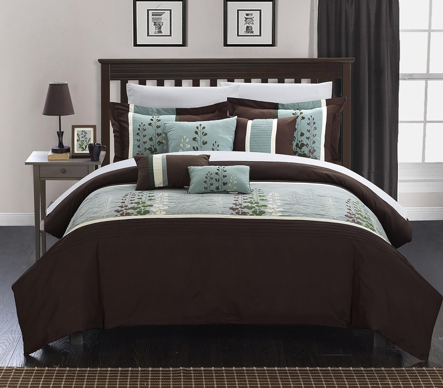 Amazon Com Chic Home 8 Piece Evan Embroidered Contemporary Comforter Set Queen Brown Home Kitchen