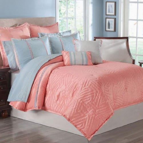 Amazon Com Trend Enterprises 16pc Luxury Peach Coral King Comforter Set 16pc Bed In A Bag Home Kitchen