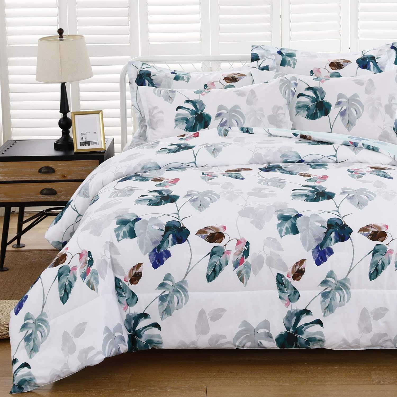 Amazon Com Floral Cotton Comforter Queen 100 Cotton Reversible Aqua Botanical Flowers Leaf Printed Bedding Quilted Comforter Insert With 2 Pillowcases 3 Pieces Inner Fill Duvet Queen Size Kitchen Dining