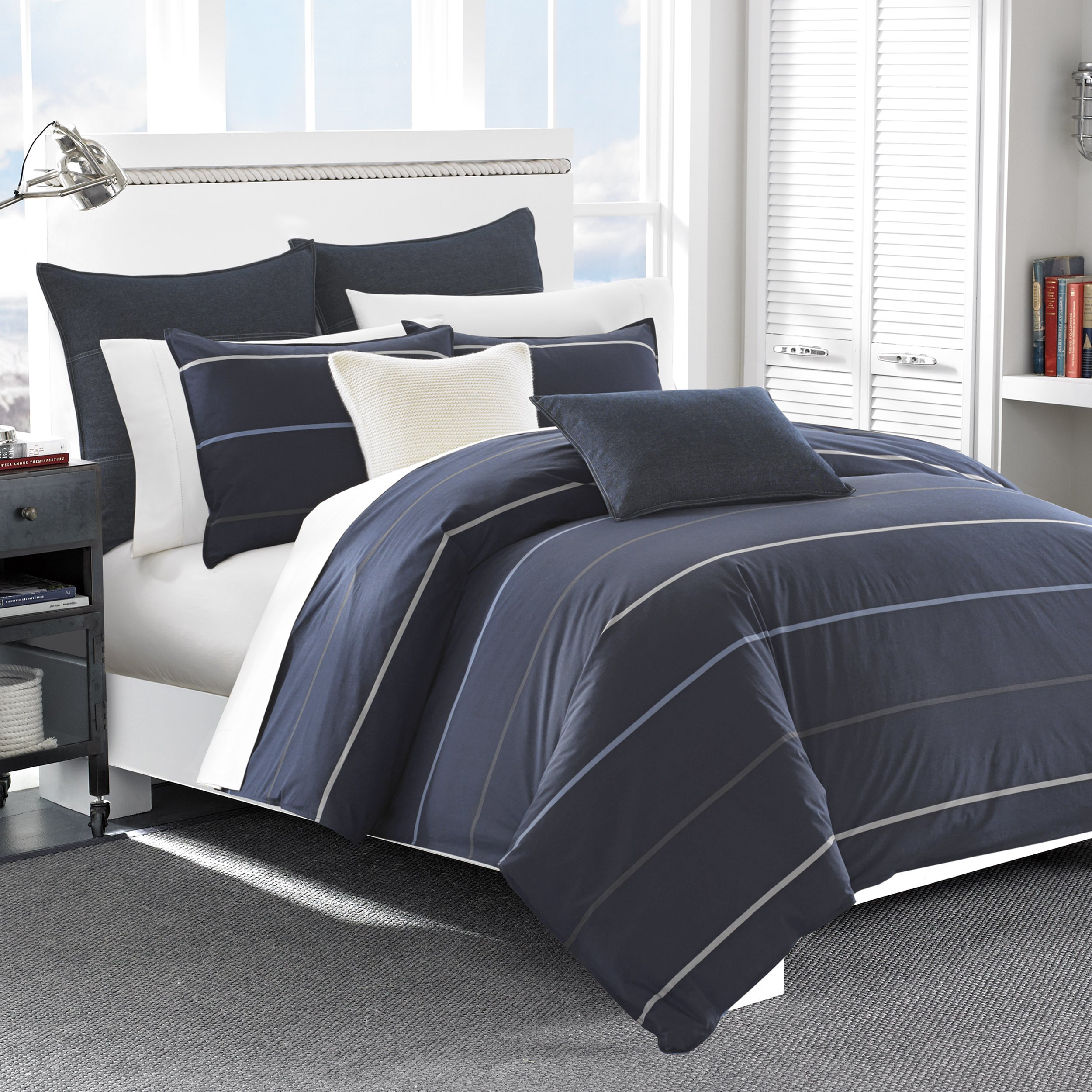 Nautica Blue White Striped Lansier Cotton Comforter Set Reviews Temple Webster