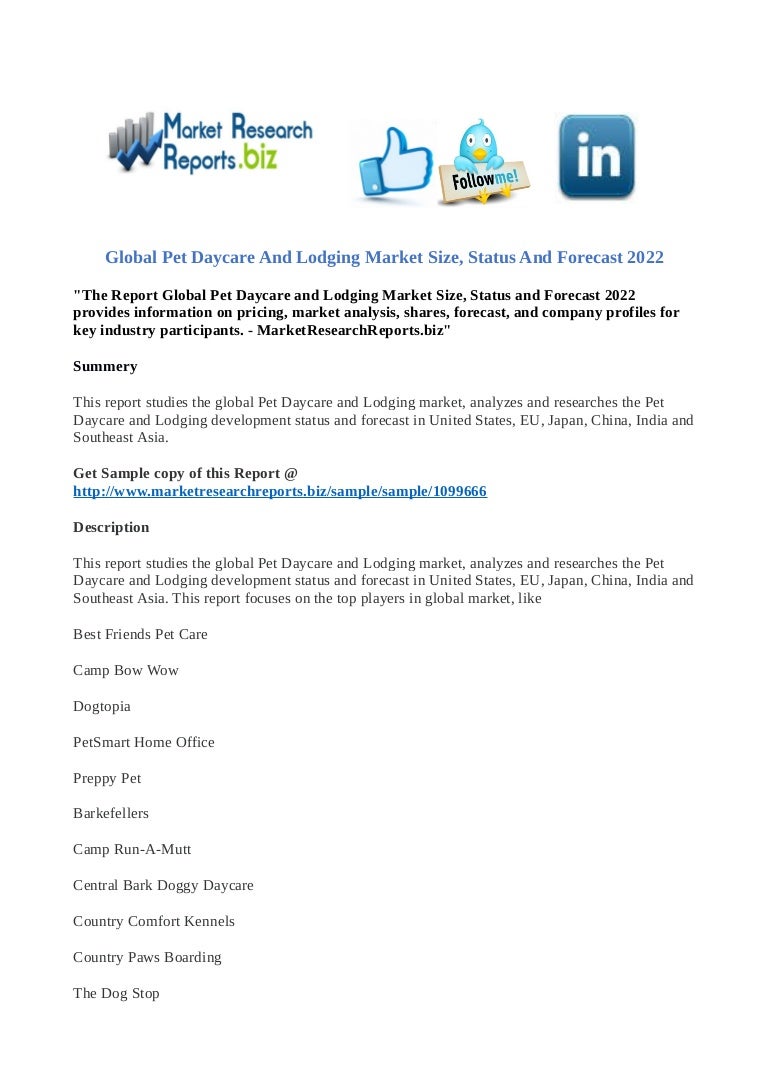 Global Pet Daycare And Lodging Market Size Status And Forecast 2022