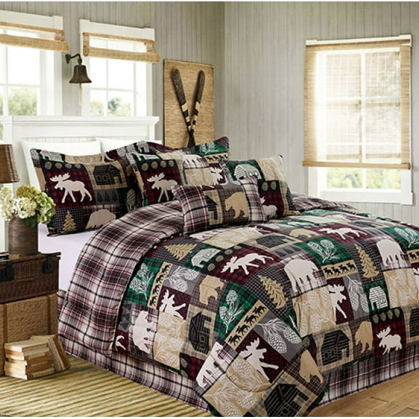 Cabin Country Hunting Lake House Reversible Queen Comforter Set 7 Piece Bed In A Bag Walmart Com Walmart Com