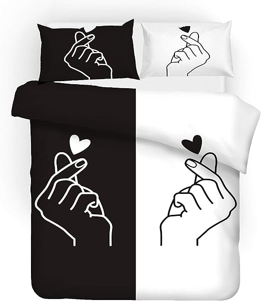 Amazon Com Black And White Comforter Set Twin Love Printed Decor Couple Bedding Comforter Cover Romantic Theme Adult Couple Duvet Cover With Zipper Closure 3 Pieces Soft Microfiber Bedding Set No Comforter Home