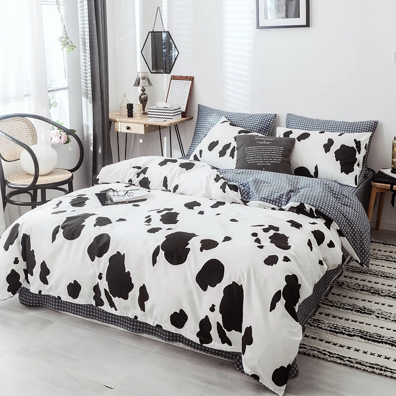 2 3 Pcs Bedding Set Milk Cow Pattern Duvet Cover Set Comforter And Pillow Cases King Size Bedding Set With Zipper Closure Wish