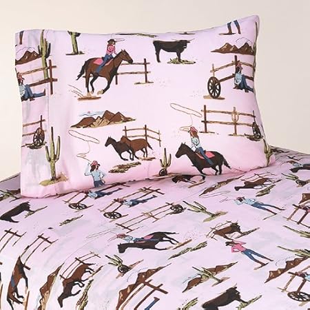Amazon Com Sweet Jojo Designs 3 Piece Twin Sheet Set For Western Cowgirl Bedding Collection Cowgirl Horse Print Home Kitchen