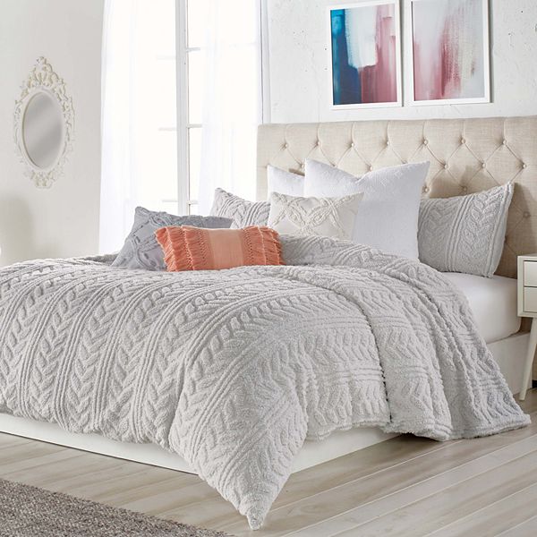 Amazon Com G H Bass Plush Sherpa Cable Knit Fluffy Soft Solid Pinsonic Cozy Comforter Set Full Queen Ivory Home Kitchen