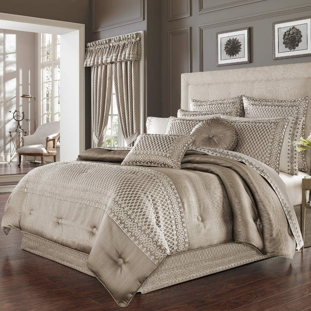 Amazon Com 4 Pieces Champagne Comforter Set King Luxury Jacquard Modern Contemporary Victorian Geometric Medallion Ivory Beige Cream Bedskirt Hypoallergenic Designer Embroidered Textured Woven Scroll Pattern Home Kitchen