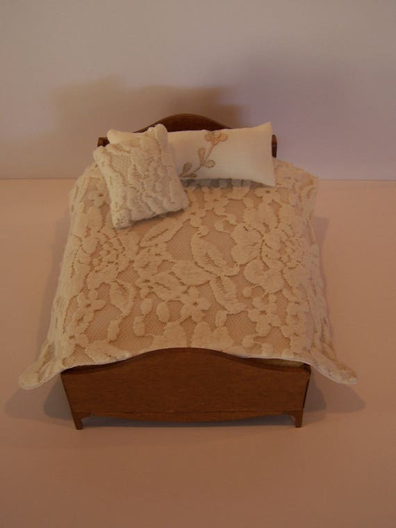 Dollhouse Miniature 1 12 Scale Cream Lace Comforter Set With Etsy