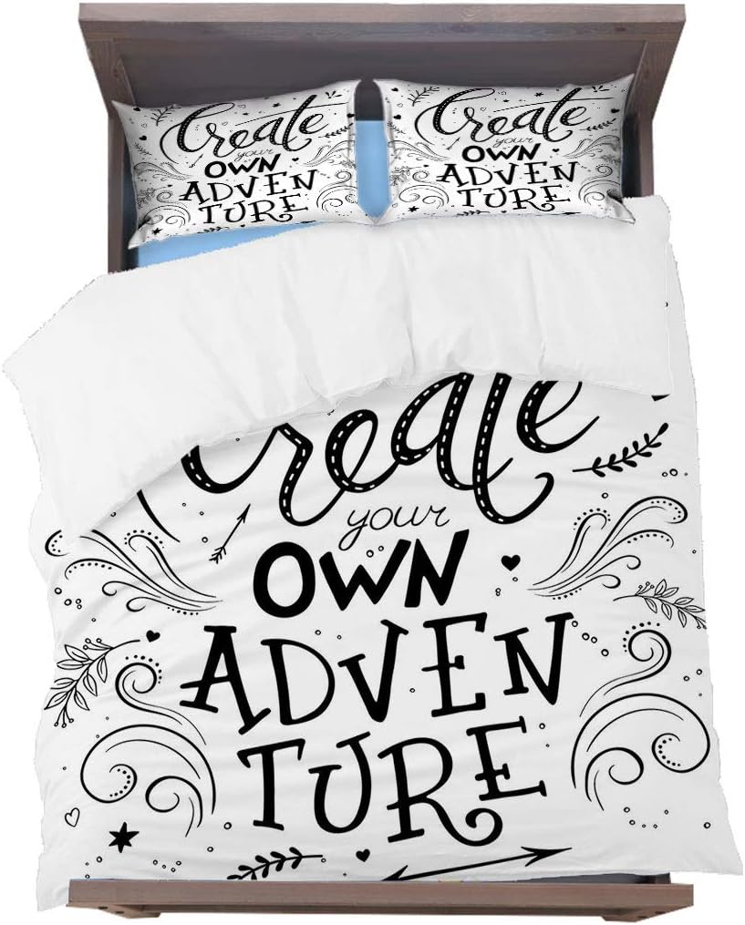 Amazon Com Bojoodecor Adventure Soft Microfiber Comforter Cover Create Your Own Adventure Lettering With Crowded Backdrop Cute Little Hearts Comforter Cover With Zipper 69 W X 86 L Black White Home Kitchen