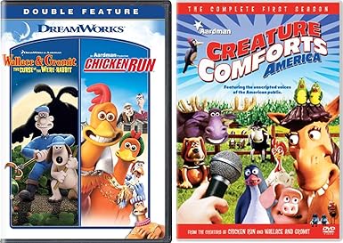 Amazon Com Animated Creatures Chicken Run Aardman Wallace Gromit Curse Of The Were Rabbit Dvd Movie Creature Comforts America Talking Animals 2 Pack Movies Tv