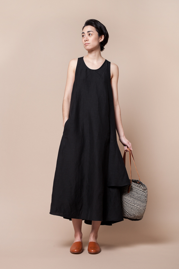 Creatures Of Comfort Lilith Dress Silk Linen Black Garmentory