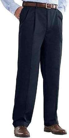 Croft Barrow Mens No Iron Classic Fit Pleated Front Comfort Waist Khaki Pants Navy Blue 30x30 At Amazon Men S Clothing Store