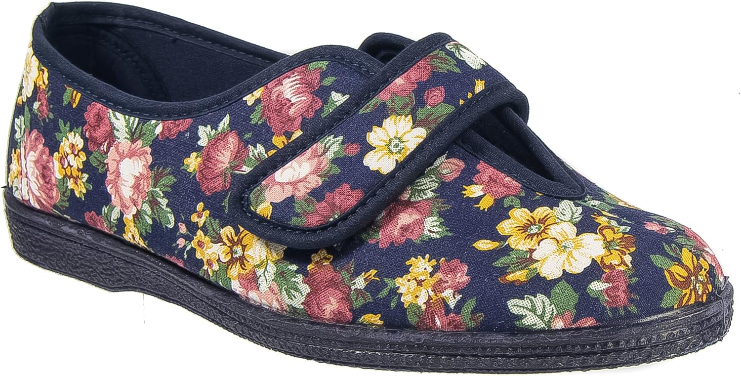 Crown Comfort Ladies Floral Velcro Washable Wide Fit Slippers Amazon Co Uk Shoes Bags