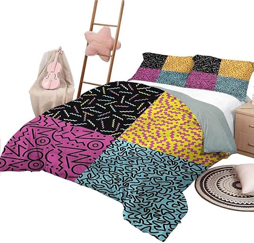 Amazon Com Nomorer Bedspread Coverlet Set Queen Size Indie Custom Bedding Machine Washable Eighties Funky Pop Doodle Home Kitchen