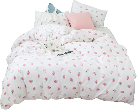 Amazon Com Aojim Japanese Kawaii Style 100 Cotton Children Cute Duvet Cover Set Small Strawberries Reversible Girls Bedding Set 3 Pcs Best Bedding Gifts For Kid Twin Size Home Kitchen
