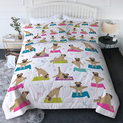 Amazon Com Blessliving 3 Piece Pug Comforter Set With Pillow Shams Cute Yoga Dogs Bedding Set With 3d Puppy Dog Printed All Season Reversible Comforter Full Queen Size Children Kids Girls Boys Bed Set