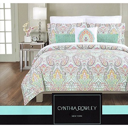 Cynthia Rowley King Paisley Medallion Teal Red Green Orange 6 Pc Comforter Set Comforter Sets Comforter Bedding Sets Paisley Comforter
