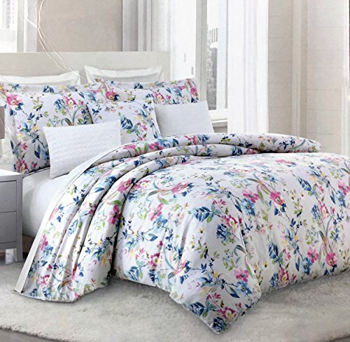 Cynthia Rowley Bedding 3 Piece King Size Duvet Comforter Cover Set Bright Floral Flowers Pattern In Shades Of Blue Purple Orange And Red On White Amazon Ca Home Kitchen