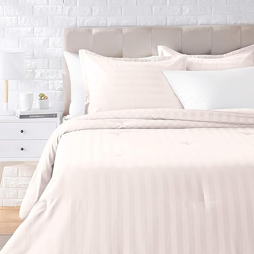 Amazon Com Amazonbasics Woven Damask Stripe Comforter Set Premium Soft Easy Wash Microfiber Twin Twin Xl Off White Home Kitchen