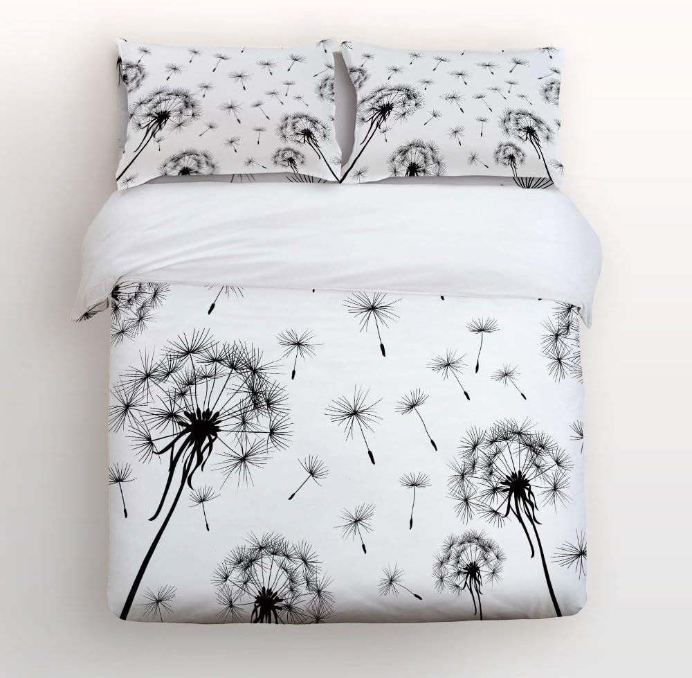 Amazon Com Dandelion Bedding Duvet Cover 4 Piece Set Classic Elegant Dandelion Blossom Flying Fluffy Petals Black And White Hypoallergenic Microfiber Comforter Cover Bedspread And 2 Pillow Cases Queen Kitchen Dining