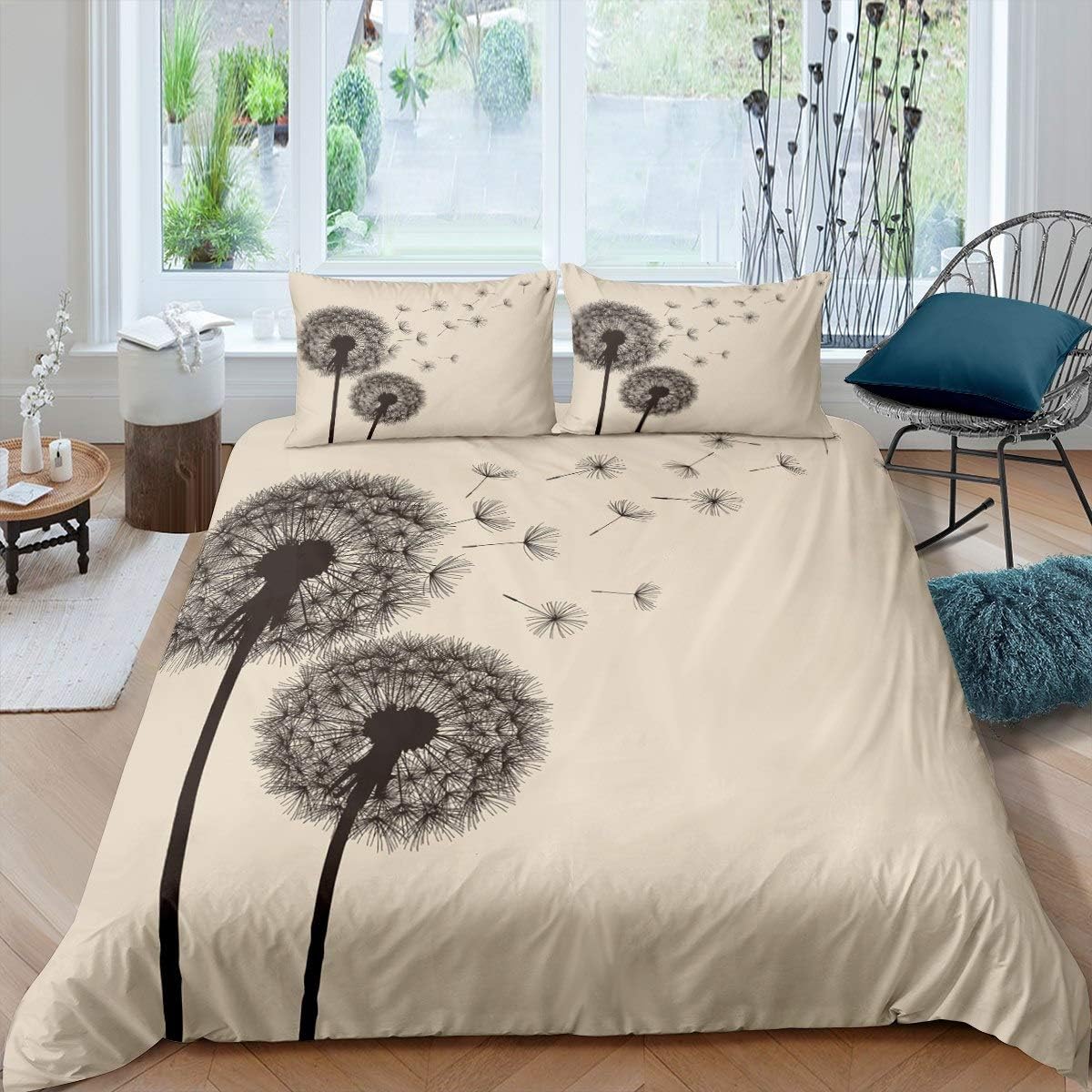 Amazon Com Feelyou Dandelion Comforter Cover Beige Quilt Cover Nature Theme Bedding Set For Girls Woman Spring Duvet Cover Set Light Khaki Print Bedspread Garden King Size 1 Duvet Cover With 2 Pillow