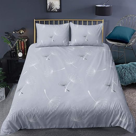 Amazon Com Grey Duvet Cover Queen Kids Dandelion Floral Design Bedding Sets Boys And Girls Funny Dandelion Comforter Cover Botanical Flowers Pattern Printed Bedding Quilt Cover With Hidden Zipper And Corner Ties Home