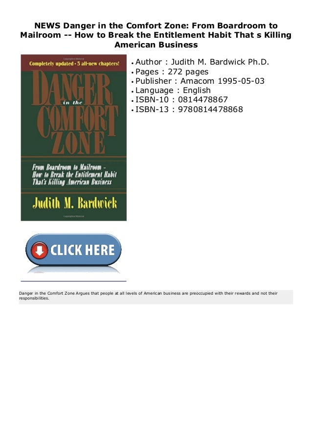 Danger In The Comfort Zone From Boardroom To Mailroom How To Break The Entitlement Habit That S Killing American Business Bardwick Judith M 9780814478868 Amazon Com Books