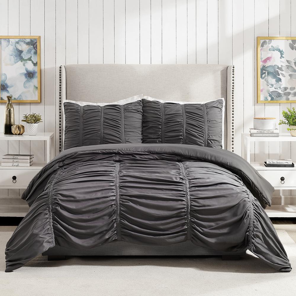 Modern Heirloom Emily Texture 3 Piece Dark Gray King Polyester Comforter Set C068918dgefs The Home Depot