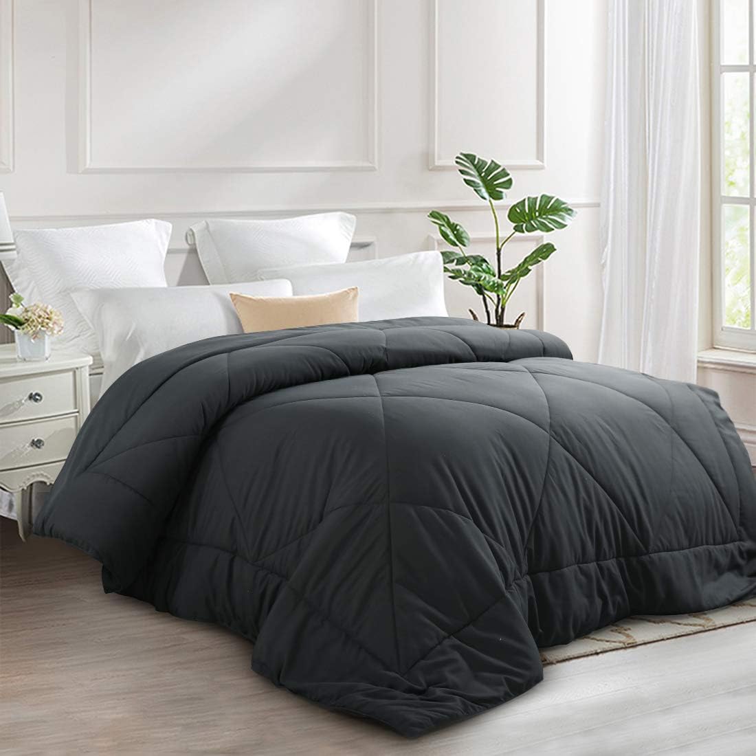 Amazon Com Easeland All Season King Size Soft Quilted Down Alternative Comforter Hotel Collection Reversible Duvet Insert With Corner Tabs Winter Warm Fluffy Hypoallergenic Dark Grey 90 By 102 Inches Kitchen Dining