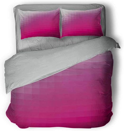 Amazon Com Hot Pink Three Piece Anime Character Set Modern Art Mosaic Tiles Gradually Ombre Inspired Squares Image Pink And Gold Comforter Set 89 X89 Inch Hot Pink Dark Purple White Home Kitchen