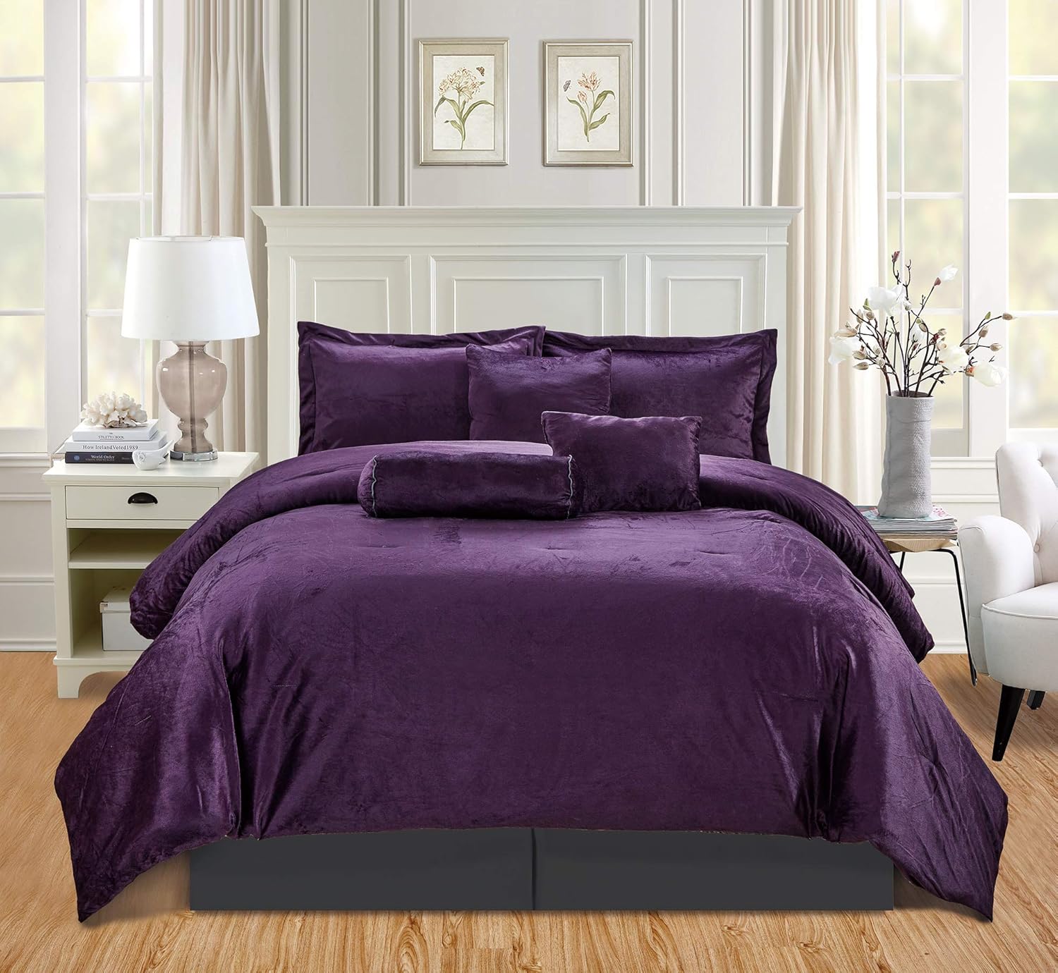Buy Grandlinen 7 Piece Queen Size Solid Dark Purple Dark Grey Micromink Velvet Comforter Set Warm Bedding With Accent Pillows And Bed Skirt Online At Low Prices In India Amazon In