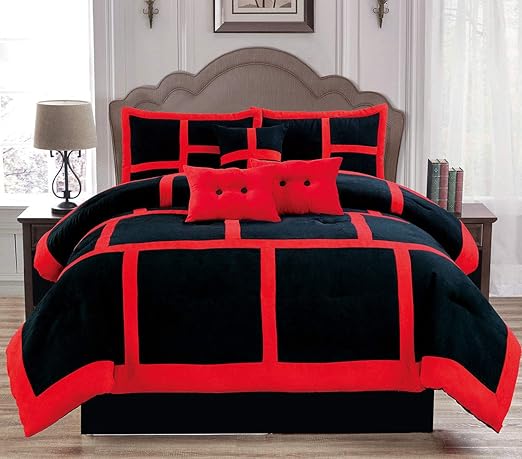 Dawn California King Size 7 Piece Micro Suede Comforter Bedding Set Soft Patchwork Oversized Bed In A Bag Black Red Walmart Com Walmart Com