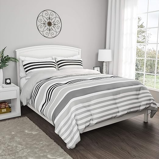 Amazon Com Bedford Home 3 Piece Comforter Set Hypoallergenic Polyester Microfiber Seaside Dawn Striped Down Alternative All Season Blanket With Shams King Home Kitchen